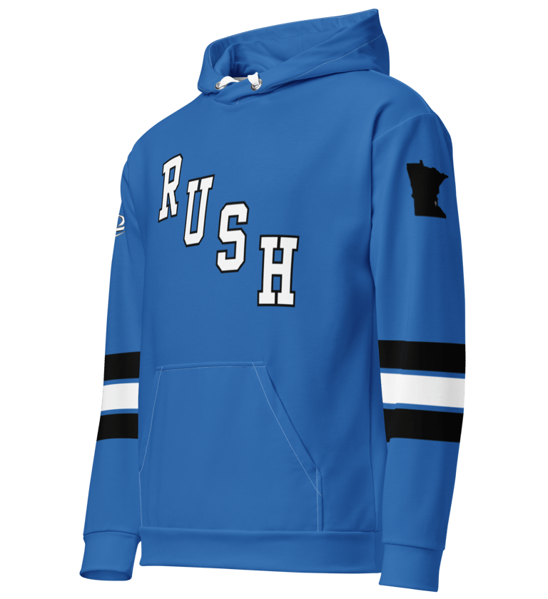 Custom-made hoodies where the design, logos, names, and numbers are permanently dyed directly into the sweatshirt.